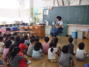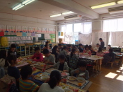 2年生が近隣の保育園・幼稚園の年長組と交流をしました。読み語りの時間は一緒に教室でボランティアさんのお話を聞きました。その後、体育館で仲間集めゲームなどで楽しく遊びました。もうすぐ一年生の園児さんたちも喜んでいました。