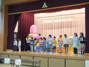 今日は一年生を迎える会がありました。各学年からお祝いの出し物があったり全校で名刺交換ゲームをしたりして、楽しく過ごしました。1年生はたくさんのお兄さんお姉さんとかかわり、嬉しそうでした。