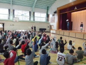 今日は学校公開、道徳授業地区公開講座がありました。2時間目は全クラスで道徳の授業を行い、3・4時間目は50周年記念事業の講演会を実施しました。三味線演奏者の浅野祥氏に来ていただき、「浅野祥トリオ」による演奏とお話で大いに盛り上がりました。故郷の大切さ、夢や希望をもつことの大切さを学びました。