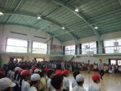 今日は音楽朝会がありました。4月の歌「はじめの一歩」5月の歌「気球に乗ってどこまでも」を全校で歌った後、運動会に向けて「ゴーゴーゴー」を歌いました。紅組も白組も大きな声で、元気よく歌いました。運動会が楽しみです。